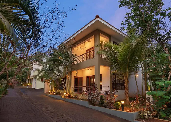 La Solace Est 6BR Family Pool Villa Candolim Cook|Solace Est 6BR Family Pool Villa Candolim Cook proporciona una nevera y un horno en la cocina completa. Los huéspedes pueden disfrutar de la cena en el restaurante Fishermans Cove, situado a 1 km. El aeropuerto más cercano a la villa es Internacional de Goa, ubicado a 35 km.